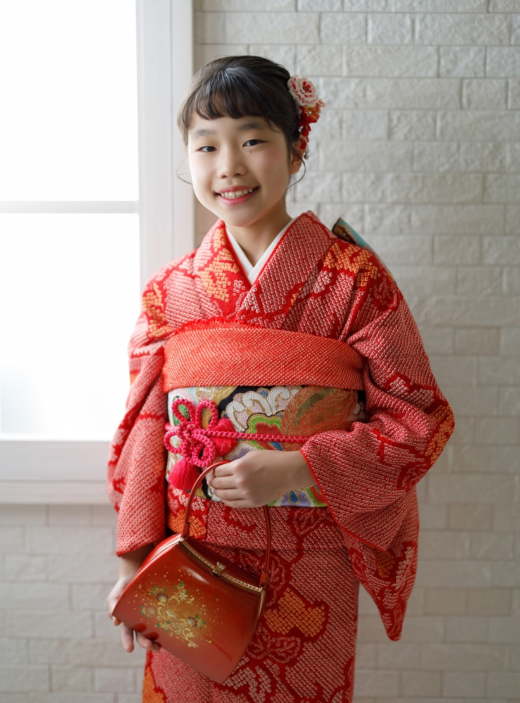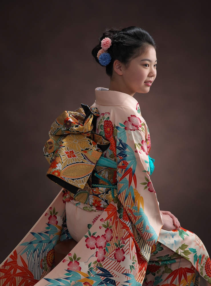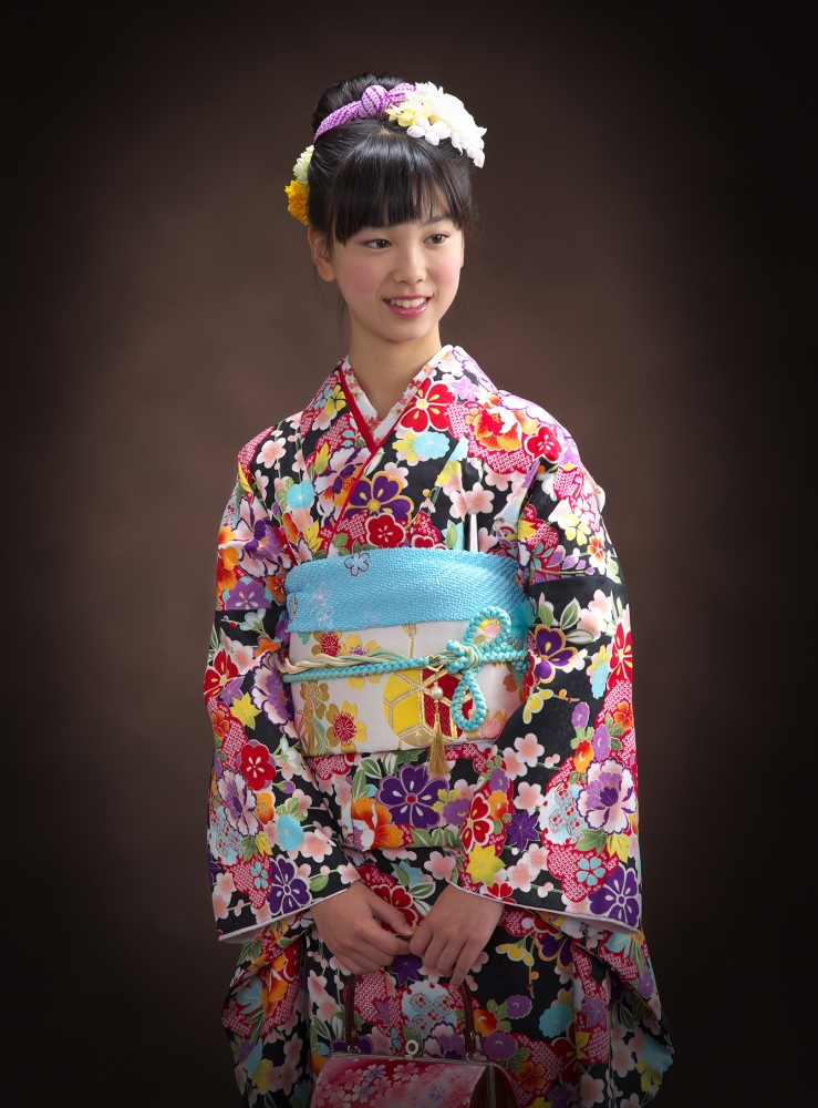 普段は可愛い13歳も着物を着て、大人っぽく。