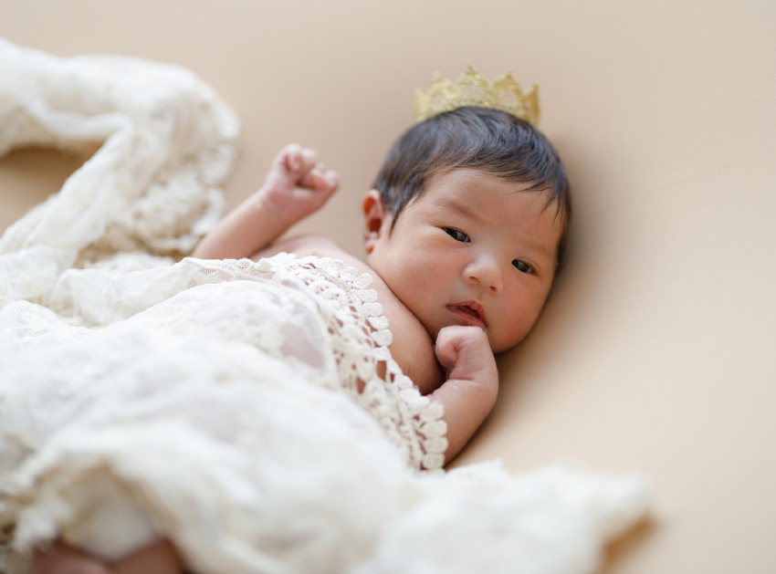そして、ママのお腹の中を思わせる丸いフォルムが印象的な、「ニューボーンフォト(新生児フォト)」は、生後3週間という限られた期間にしか撮影できないとても貴重な一枚です。
