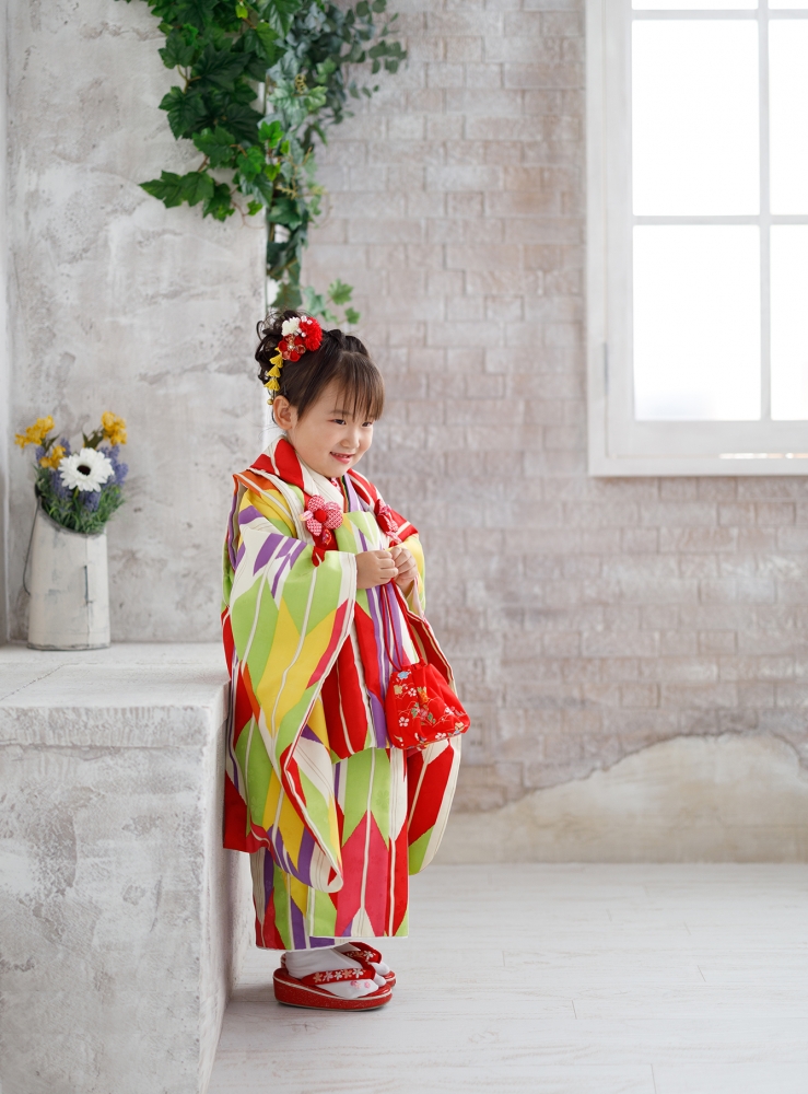 お子様の着付・ヘアセット無料 レンタル着物は別途かかります