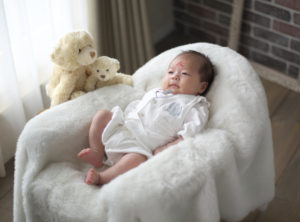 暑い毎日、蝉の鳴き声も賑やかに早くも七月が終わろうとしています。天災は実に様々なことを引き起こし、目の当たりにしてもまずうろたえてしまう自分自身がいましたが、こうしてスタジオで皆様をお迎えすることができる日常には本当に感謝だと思います。お宮参りの赤ちゃんは今日もすやすやよく眠っていました。ぎゅっと力強く握った手にこれからいっぱいの幸せをつかんでいくことを願うばかりです。お腹がすいたら泣いてオムツがぬれたらまた泣いて。気持ち良くなったらまたすやすやと眠る・・・これが赤ちゃんの自然な姿だなぁといつも思います。と言いながら、赤ちゃんのひとりでの撮影ではできればお目々が開いている方が嬉しいのでお目々が開くようにオムツを替えてみたり、明るいところに連れて行ってみたりおもちゃの音を鳴らしたり。「早く寝てほしいな〜」と思うことはあってもわざわざ起こすことはなかなかないですからきっと赤ちゃんにしたら迷惑な話だろうな・・・と思いつつ小さな可愛い足の裏を少しこちょこちょしてみたり。そんなこんなを繰り返すうちにお目覚めの赤ちゃんもいればすやすや気持ち良く眠り続ける赤ちゃんも。大人だったらあれこれちょこちょこ構われたら絶対起きてしまうだろうに、赤ちゃんにはそんなこと関係ないのかと赤ちゃんのパワーに脱帽です。そもそも自然には逆らえないというか無理に事を進めてもやはりなかなかうまくはいかないんじゃないかと思います。