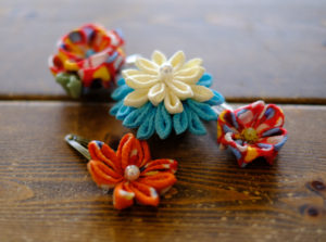 先日同じ長岡京市にあるパン屋さんで待ち合わせをして初めましての方とお会いしてきました。なぜパン屋さんかというと私とその方の共通の知り合いであり、パン屋さんの店主さんとその方は中高の同級生でもあるそうです。長岡京市の中心部にあるそのパン屋さんにはイートインスペースもあるのでお昼ご飯もご一緒させていただきました。お話ししてみると、私の中、高の先輩でもありました笑。今日の待ち合わせの目的は、つまみ細工の作家さんであるその方に、ながおかスタジオの七五三で使う三歳児さんと七歳児さんの女の子の髪飾りをお願いするためです。初めて彼女の作品を拝見した時に、この髪飾りをながおかスタジオに七五三の撮影に来てくださる子ども達の髪に飾ってあげたい、と思いました。細かな手仕事からなる作品はどれもその方のお人柄が表れているような優しい優しいものばかりなのです。裁縫が苦手でボタン付けがやっとの私には想像を絶する世界ですが一つ一つが本当に素晴らしくて見入ってしまいます。