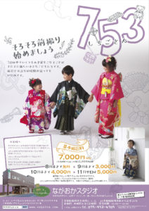 ながおかスタジオの七五三は、八月末までは撮影料が無料になります。撮影料がいらない分、お気に入りの写真を増やす楽しみにもつながります。完全予約制で安心して撮影に臨んでいただく事ができます。子どもたちのこれまでの成長に感謝するとともにこれからの健やかな成長を願う七五三。何かとまだまだ落ち着かない状況は続きますが、日々の行動には変わらず気をつけながら子どもたちの大切な行事ごとは見逃さず行ってあげたいですね。
