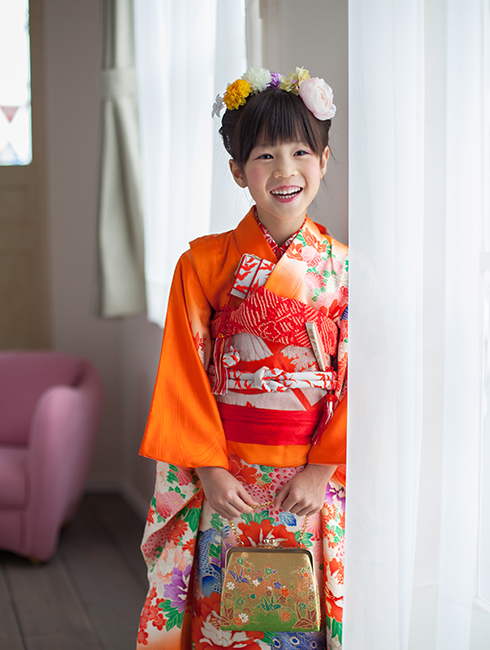 スタジオ内での七五三撮影は大きなライティングを使用したり、自然光の中で撮影したり。